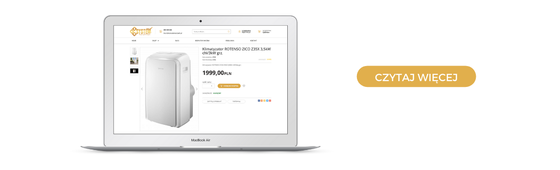Jeżeli nie jest potrzebny klimatyzator na stałe, nie ma możliwości zainstalowania go w jednym miejscu, lub też ma służyć do użytkowania w kilku pomieszczeniach, warto zainteresować się klimatyzatorem przenośnym, na przykład Rotenso ZICO. Nie tylko chłodzi, ale też posiada opcję ogrzewania i suszenia powietrza, co w wielu sytuacjach jest niezwykle wygodnym rozwiązaniem. Urządzenie zostało wyposażone w filtr HD IAIR oraz posiada szeroki kąt nawiewu, co znacznie zwiększa jego funkcjonalność.