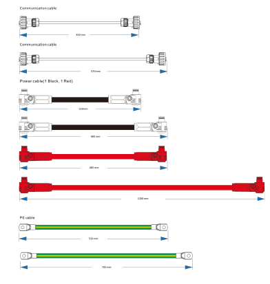 Zestaw okablowania Kstar do podłączenia 2 modułów bateryjnych BluePack 5.1 z inwerterem 1-fazowym to kompletny zestaw przeznaczony do bezpiecznego i efektywnego połączenia komponentów systemu fotowoltaicznego.